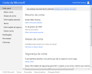 Informações da conta Microsoft